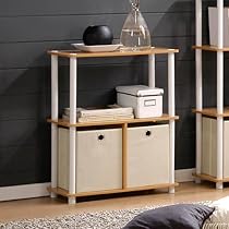 Furinno 2 Tier Multipurpose Storage Rack Shelving Unit Bookshelf Bookcase Cabinet with 2 bins - Beech Finish 99152BE